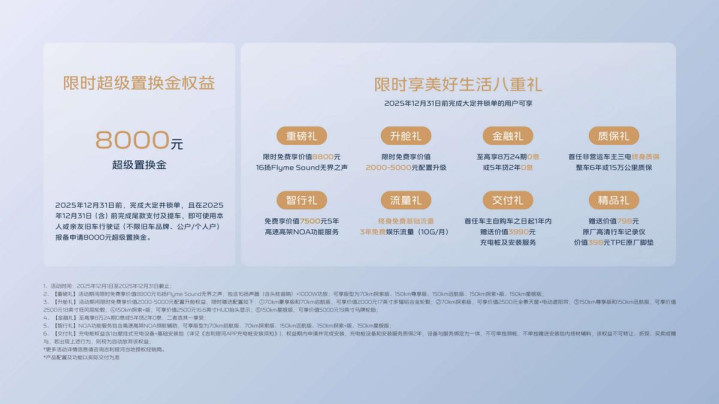 它并非实验室的“特供车”,而是已连续四个月销量破万的市场成熟产品。目前,吉利银河A7提供七个版型,限时指导价为8.18万元至11.78万元。即日起至12月31日前下订,用户可享包括免费获赠价值8800元的16扬声器Flyme Sound音响、至高8万元24期0息金融方案、不限品牌8000元超级置换金等在内的八重上市权益。