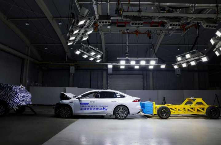 这份“硬”,首先体现在它对物理冲击的抵御能力上,也就是我们常说的被动安全。此次挑战模拟了极端复杂的真实事故场景,其中“前后夹击”项目尤为严峻。它要求车辆在经历一次正面碰撞后,再承受后方车辆以80公里/小时速度、70%偏置率的追尾。在这种叠加冲击下,银河A7展现了其车身结构的卓越完整性。这得益于其高强钢笼式框架车身,整车高强度钢占比超过71%。