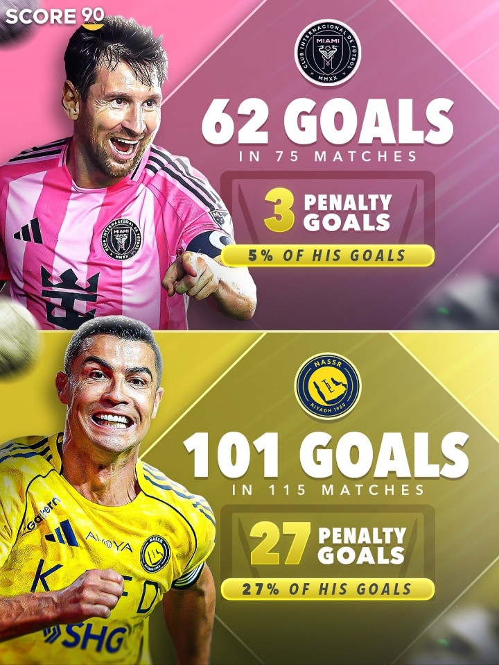 C罗:利雅得胜利115场101球,27点球,占比27%